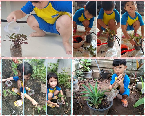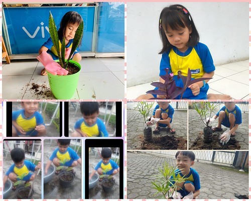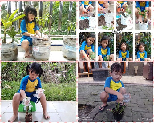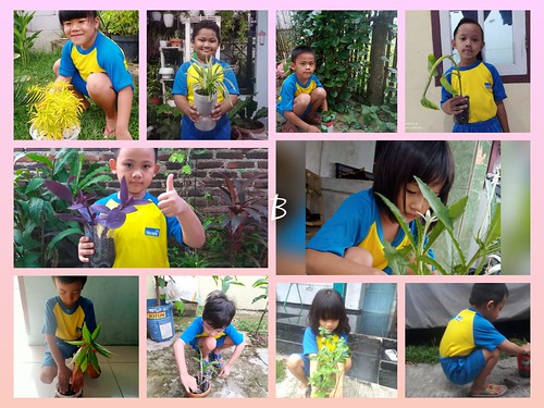 Selesai menanam anak – anak diberi tugas untuk merawat tanaman yang mereka tanam dengan cara menyiram. Anak- anak meletakkan tanaman itu di depan rumah membuat rumah menjadi indah.